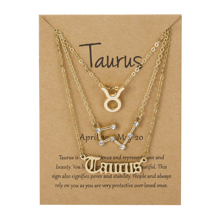 Embrace your cosmic connection with this beautifully curated, 3-piece layered necklace set, designed to be a personal tribute to your star sign.